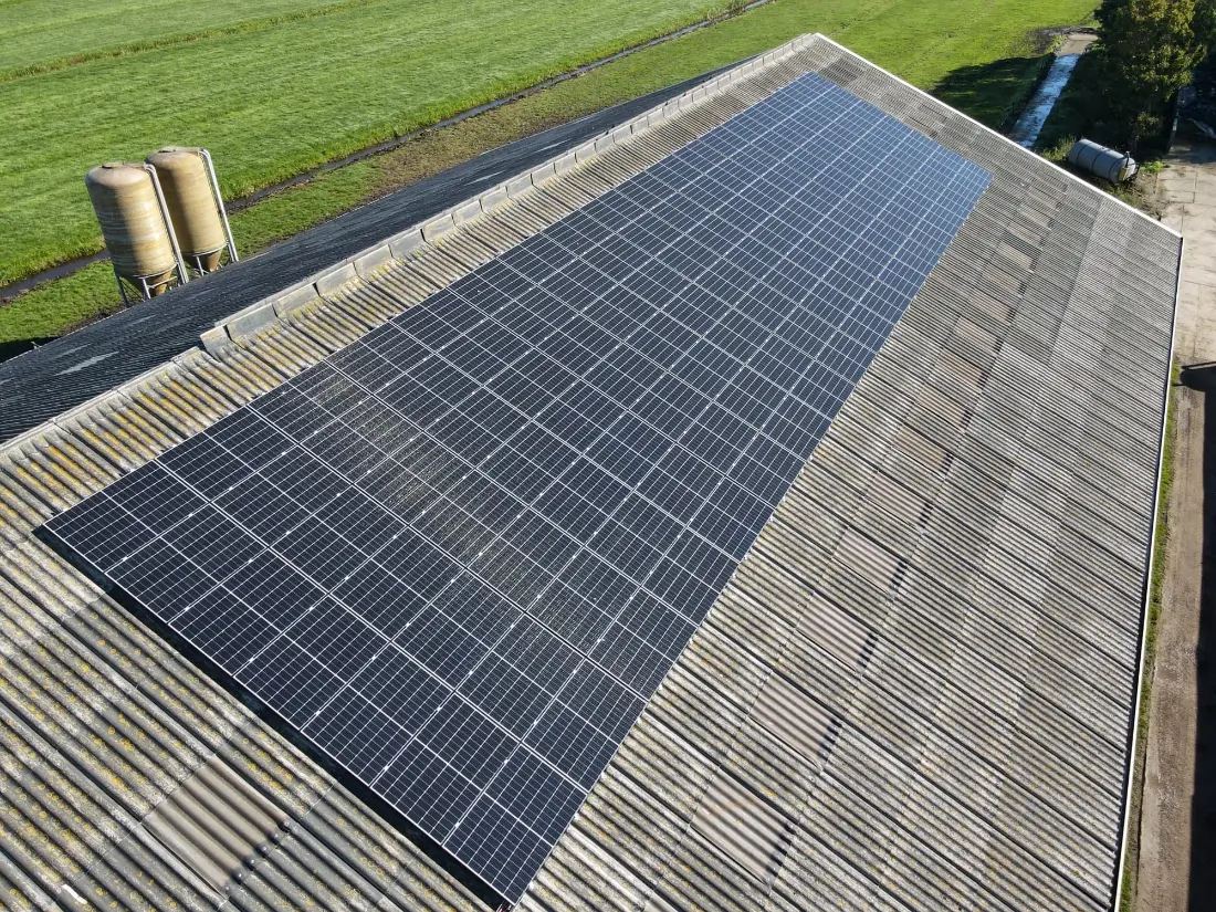 In Noordeloos hebben we 126 x 410Wp panelen geïnstalleerd. Deze panelen van het merk LONGi Solar hebben we aangesloten op een 40KTL omvormer. De panelen zijn bevestigd op een Van der Valk montagesysteem.