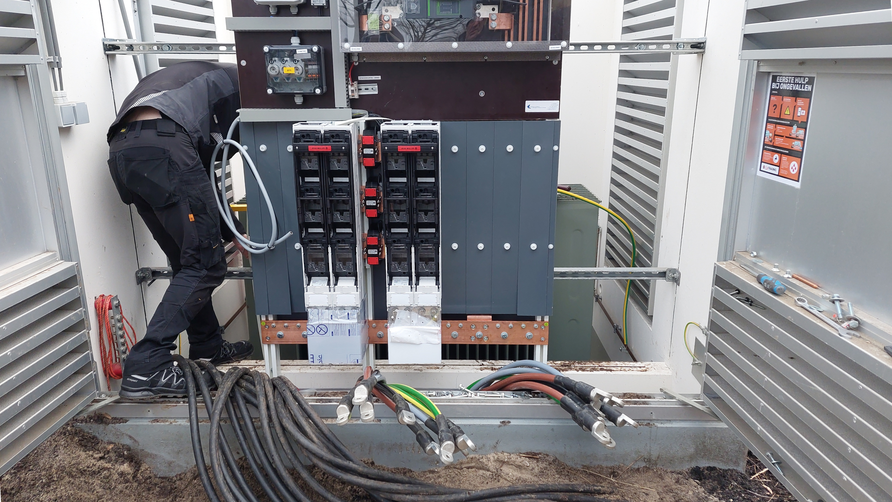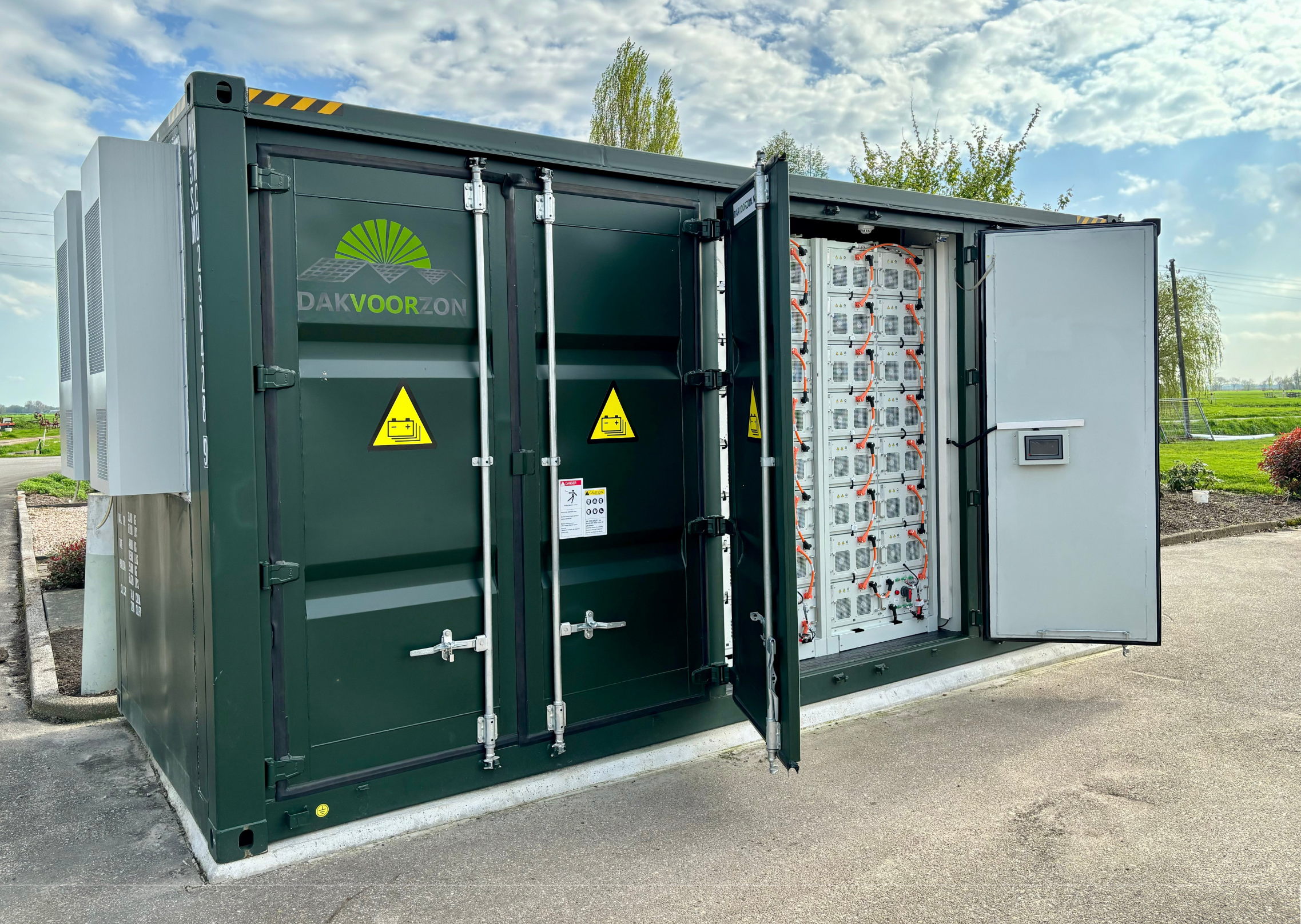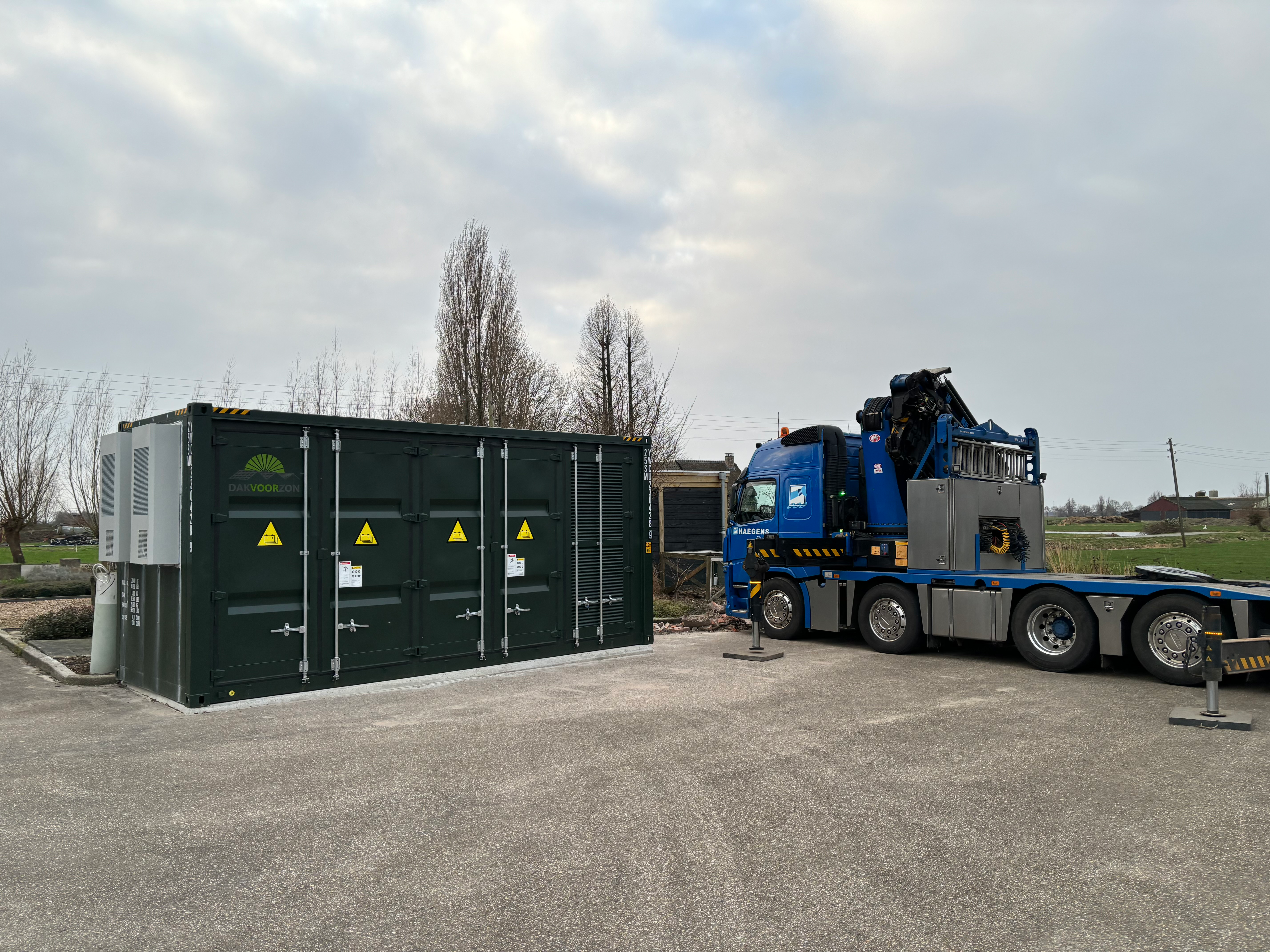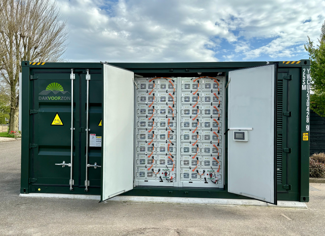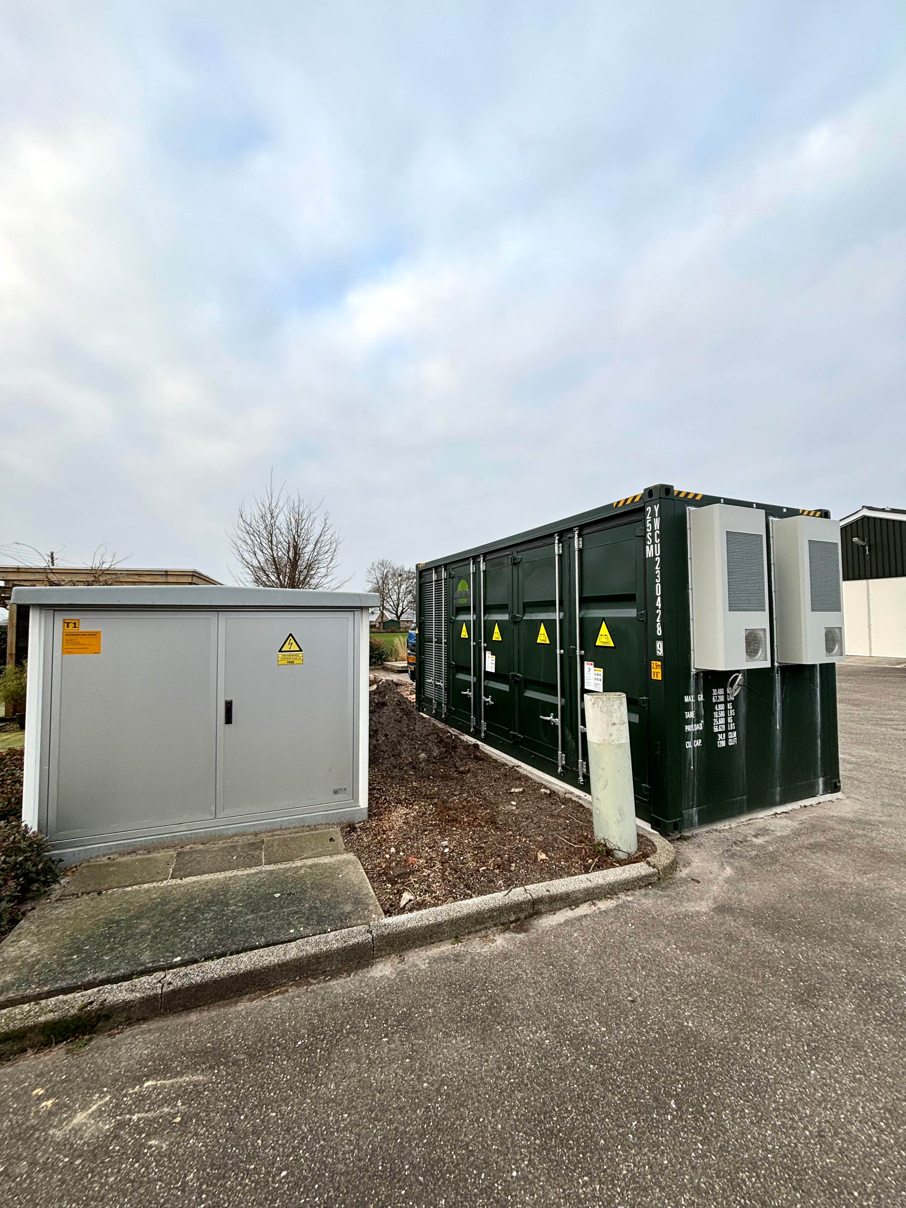 Bij dit project in Stolwijk hebben we een 20ft accucontainer geplaatst. Deze 1MW batterij heeft een capaciteit van 1104kWh en is aangesloten op een 1000 KVA trafo. Wij zullen deze batterij zelf exploiteren, om zo een nog beter beeld te krijgen van de markt. Hij zal worden ingezet voor o.a. de FCR-markt, de onbalansmarkt en als pilot draaien voor eventuele nieuwe markten.